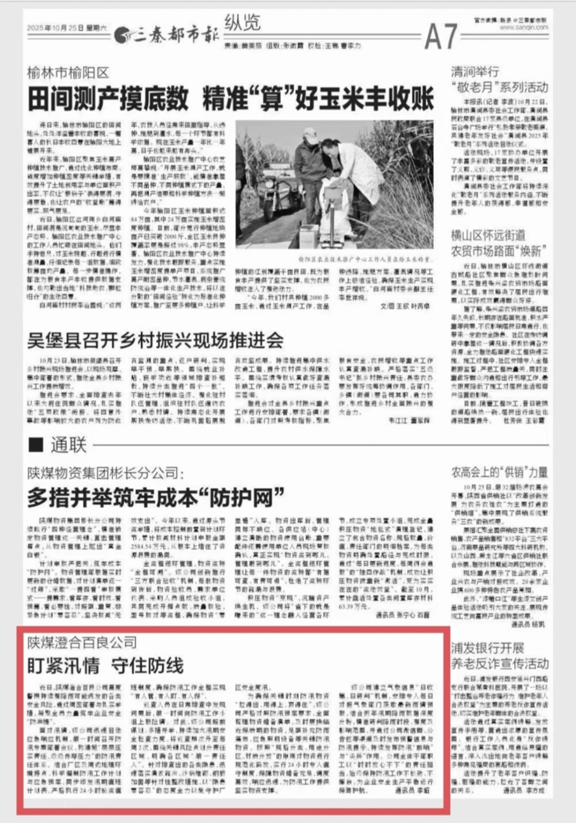 三秦都市报|澄合矿业百良公司:盯紧汛情 守住防线