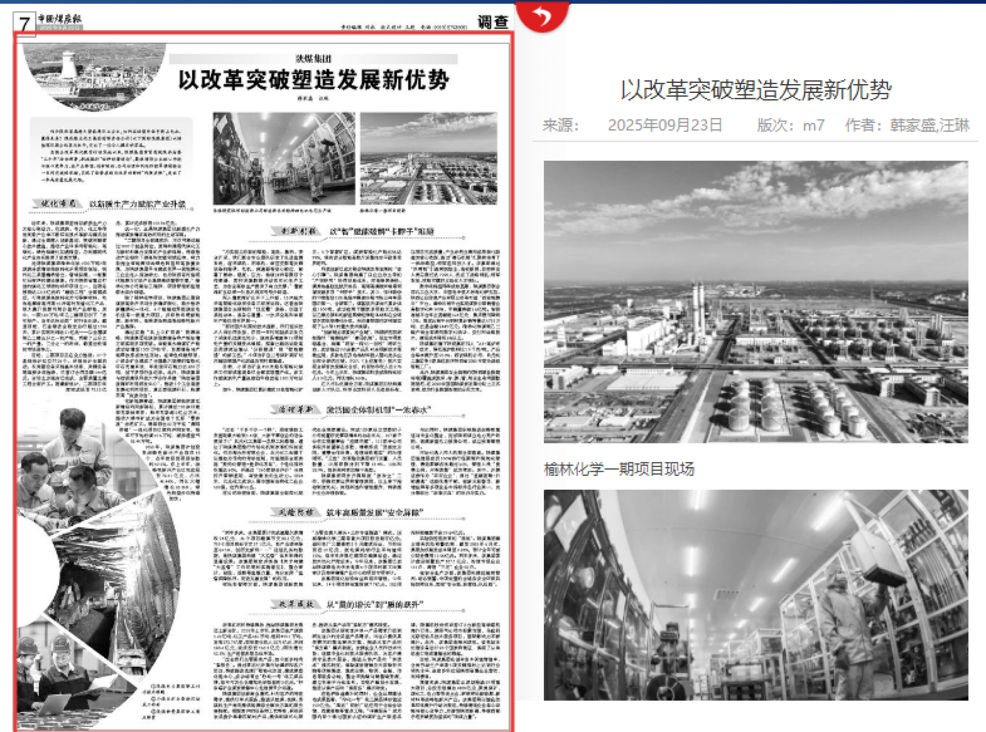中国煤炭报 2025年9月23日7版 陕煤集团以改革突破塑造发展新优势作为陕西省属特大型能源化工企业,如何在转型升级中抢占先机、赢得未来?...