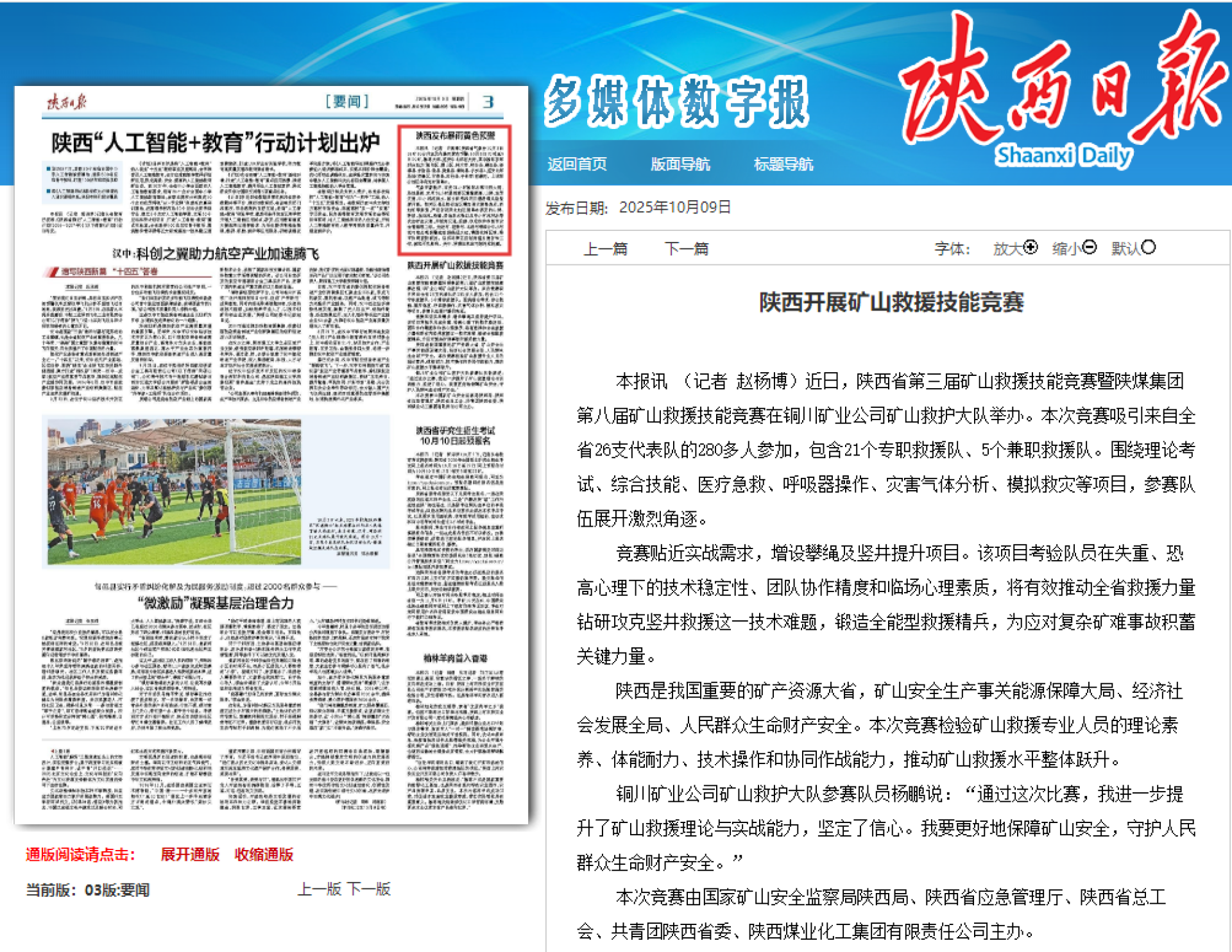 陕西日报 | 陕西开展矿山救援技能竞赛