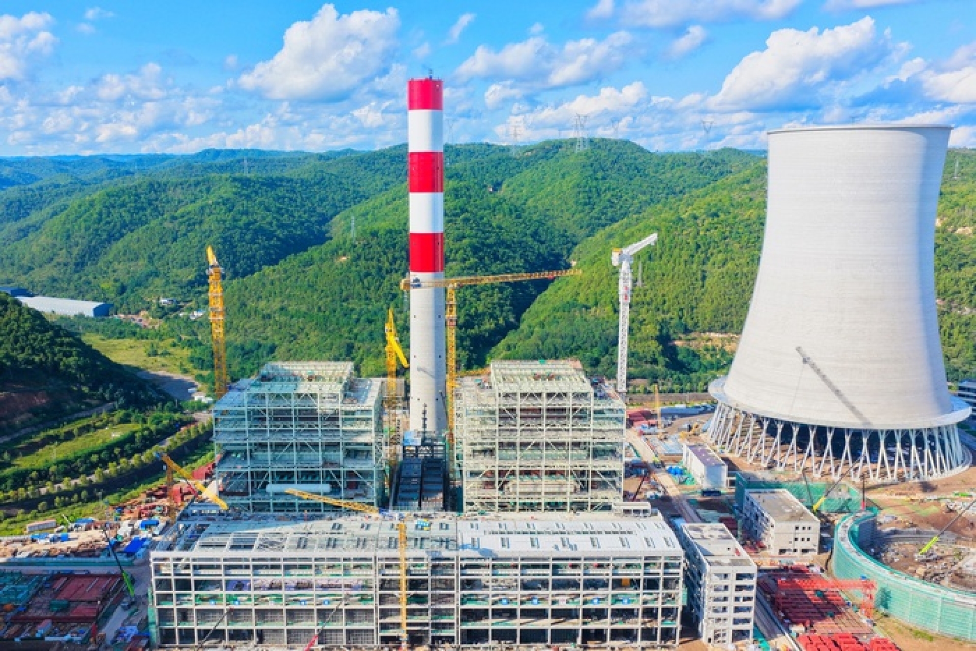 黄陵矿业2×1000MW发电项目1号间冷塔提前43天顺利到顶
